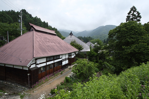 集落の民家は大型の「兜造り」の茅葺き民家で現在はみなトタン葺きとなっていますが、江戸時代後期から明治時代に建てられたもので主屋と土蔵によって構成されています。