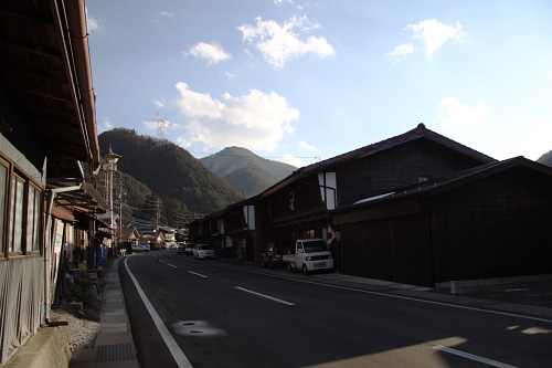 史跡としては、同じく中山道木曽路最大の町並みを誇る、奈良井宿に次ぐ規模であったといわれていますが、今や閑散とした虫食い状態で、さらに中央を走る二車線の道の広さとセンターラインがその風情を著しく損なっています。この道の広さは拡張したものでは無く、当時からそのままの幅だそうで、おそらく宿場町当時には、この道の中央に水路が流れていたのではないかと思われます。