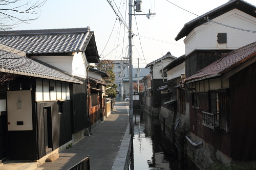 豪農の屋敷の土蔵はこの水路に沿って立ち並び、田舟から蔵へ直接荷物を搬出入する入口が水路に向かって設けられています。