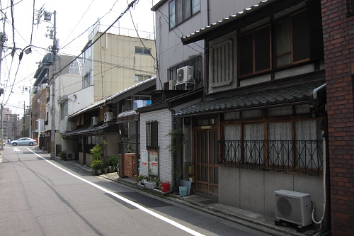 木津屋橋通は京都駅前を走る塩小路通の一筋先(北)を走る小さな路で、東は東洞院通から京都タワーの裏側を通り、途中梅小路機関区で中断、山陰本線の先から再開して西は御前通に至る約2kmの路です。京都の玄関口である京都駅前のビル街を通りますが、堀川通から西は小規模な手工業者の混在した住宅街が続きます。