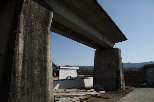 新町1丁目の終わり、寿命川沿いに続き吉野川を目前に工事が止まっているコンクリート製の高架があります。この高架は戦前に計画され、途中で中止された廃線の遺構です。五条を起点に紀伊半島を縦断して熊野の新宮を結ぶ、国鉄五新線の夢の跡。はるか昔、紀ノ川を渡り高野山の先は未開の地であり「熊野」と呼ばれ恐れられ、「黄泉の国」として崇拝され続けていました。その目前で計画が中止され放置された鉄道の遺跡は、何か物語性を感じます。 (ちなみに五新線はずっと奥地の西吉野村城戸まで建設されました、建設中止後はバス専用道路として舗装され、路線バスが走っています。)