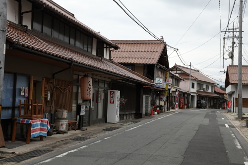 かつて武家町だった出羽地区はその後耕作地に転換して大きくその姿を変えました。今はもう武家屋敷の遺構も残されてはいません。広島方面へと伸びる旧街道沿いに古い家並みが残ります。一方、出羽川対岸の三日市地区は、町役場が置かれ中心商店街を形成していますが、今は対岸の出羽地区側に商業施設が発展している為に、こちらも通りには人影もほとんど無く閑散としていました。