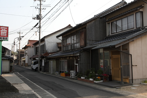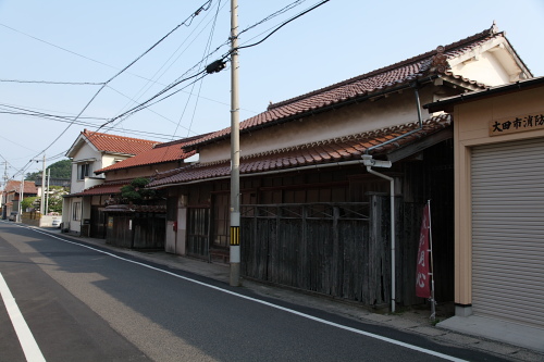 江戸期に波根西村の枝郷であった港町久手には船問屋が軒を連ねていたといいます。現在も古い商家建築がいくつか残されていますが、仁摩町宅野に見られるような大きな屋敷規模のものや土蔵などはほとんど見られませんでした。