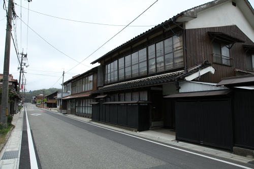 丁字に交わる旧道沿いに農村集落と商店街が形成されてます