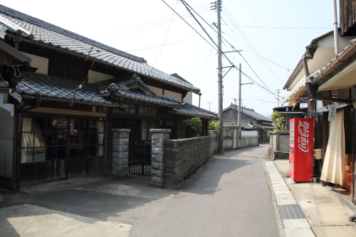 萩城下の商港、経済の中心地であった浜崎の対岸に位置していた為でしょうか、また平坦な土地が海岸線に沿ってわずかしか無かった事もあり、鶴江の家並みは一般的に多くみられる漁業集落とは異なり、切り妻平入りの民家が街道集落のように軒を連ねいます。