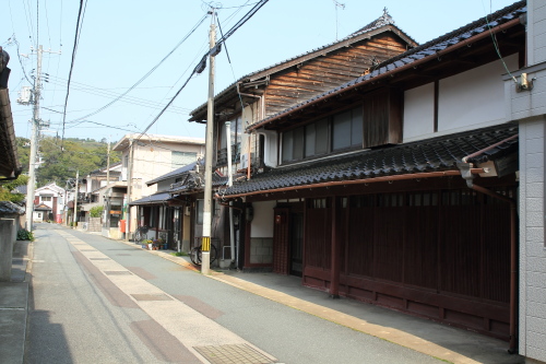 越ヶ浜は萩城の北東約4kmに位置する奈古屋山(笠山)の東側の砂州上に発達した漁業集落です。笠山は奈古屋氏の居城があった事から奈古屋山とも呼ばれ、その東側に位置する馬鞍山との間の打越しの浜であったことが越ヶ浜という地名の由来とされています。越ヶ浜は藩政期に正式な漁港として認められ、浜崎の魚問屋商人に収穫物の販売一切を依託していました。陸揚げされた魚はすべて「いさば船」(魚運搬船)で浜崎まで運ばれました。