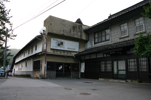 古い街並みは七日市地区に多く集まっています。その入口馬洗川に架る巴橋の先に構える重厚でレトロな建物が福六酒造の社屋(旧吉舎郵便局)。建物の裏手には大きな白壁の酒蔵が並んでいます。