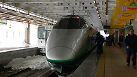 | 中央線にゆられ、東京駅には早朝の5:40くらいに着いた。こんな時間に東京駅にいるのは、現在の生活ではまずありえない。思い出せば、学生時代に終電に乗り遅れて東京駅の表で一晩明かした時以来だ。さすが東洋一のターミナル。早朝でも人は多い。おそらくは上越・北陸方面へのスキー客が大半だ。 山形県の新庄行き山形新幹線400系つばさ101号は6:28発。まだ1時間近くある。ぼーっとしているが寝るわけにはいかないし、だいぶハイにもなっているのでテンションは比較的高い。 この時間の東京駅の売店街もさすがに大半がシャッターが降りたまま。数少ない弁当店だけは空いており盛況だった。東京駅発の最も早い始発の新幹線(JR東日本)は6:00発のこまち1号。それ以降も、次々と入線しては乗客を乗せて、東北や新潟、長野方面へ出発していく新幹線たち。丸の内はまだ眠っている。 ホームや駅舎内をぶらぶらして時間を潰し、ホットコーヒーを買って、つばさに乗り込んだ。定刻通りに出発するつばさ。見慣れた丸の内の風景、神田を過ぎて秋葉原の手間で地下へと潜っていく。かつての終着駅であった上野駅を過ぎて、日暮里の先から再び地上に出る。あたりはまだ薄暗い。大宮にさしかかるあたりで日が差し始め た。夜を通してきた目には眩しすぎる。 さすがは新幹線である。昨日から今朝にかけて揺られてきた「ムーンライトえちご」とは乗り心地が別次元である。あまりの快適さにウトウトとしてきた。しかし、首都近郊を過ぎて列車が本格的な加速を始め、200km/hに達すると、先ほど述べた褒めは全て返上しないといけない。やはり在来線特急に毛が生えたようなミニ規格新幹線である。車両限界が低いのか、揺れる揺れる、震動も激しい。思わず目が覚めてしまったが、なれるといつのまにか眠りについていた。 福島にさしかかる手前で目が覚めると、目の前には雄大な安達太良連峰が姿をあらわす。東京から再び遠く離れた地へ来た事を実感する。 福島駅を出発すると、東北新幹線の高架から左に反れ、ゆっくりとスロープを下りながら、福島駅の1階から発車する奥羽本線と合流する。奥羽本線は山形新幹線の終点駅である新庄までの区間の線路は標準軌に改良されたている。その為在来ローカル線も標準軌になっている。 奥羽本線ではつばさも、コットンコットンと低速で走っていく。低速とはいっても100km/hは出ているのだが。 さすがにこの速度になると、再びハイレベルな快適さが戻ってきた。 秘境ともいえる、雪の山岳地帯を線路に積もった雪を巻き上げながら新幹線は、豪快かつ静かに連続するカーブを登っていく。窓の外の厳しい自然の世界を、あたかも大画面モニターで鑑賞しているかのような錯覚を受けるほどに、内と外の空間に同一性はない。 庭坂駅をすぎると、地形に沿いながら33‰の勾配で峠をめざす。山形新幹線の改修に合わせ一部はルート変更が行われたが、強力な機関車が重連で登った時代と大きくは変わらない。板谷駅からは、各駅が飛行場の格納庫の様なスノーセットに駅全体が覆われており、一部スイッチバックの遺構も残されている。豪雪地帯にある秘密基地の様相に目を奪われたが、新幹線は停車する事なく通過していった。 その名もズバリ「峠駅」を過ぎると、今度は山形平野まで33‰で下っていく。峠駅にはスイッチバック線がスノーセットに覆われて斜めに突き出していた。カッコイイ。勾配がゆるやかになると、線路沿いにはポツポツと民家が増えてきた。やがて踏切も見え出すと米沢駅はもう近い。米沢駅はでローカル線の中では根強い人気を誇る米坂線と、奥羽本線在来線との乗換駅でもある。 雪深い峠越えでダイヤが少し乱れたようだが、平野部でも吹雪で遅れがでているようだ。 奥羽本線は新幹線が走るが、単線である。ゆえに新幹線も列車交換が頻繁にある。だから回復運転は出来る状況にない。すでに10分近く遅れている。接続する陸羽西線に乗り遅れると、今日一日の旅程が大きく狂う。 朝から不安にかられる。 |