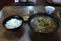芸備線が備後落合に到着すると正面からすぐに次に乗る予定の芸備線(361D)がやってきた。同じく単両のキハ120系だ。さらに、なんと木次線も右手から合流して、2つ併走してやってきたのだ。こちらも単両の120系だ。ちなみに、この備後落合駅における芸備線の乗り継ぎでこんなにベストな接続は日に何度もあるわけではない。多くは、周囲に民家もほとんどない無人駅で何時間も待つことになるのだ。 列車は再び狭い谷間の急勾配を時速15キロでゆっくりと、ゆっくりと、ケーブルカー並みの速度で進んでいく。比婆山駅の周囲には集落があった。比婆山は信仰の山だが、冬はスキー場で賑わう。もっとも電車を利用して訪れるスキー客はおそらくいないであろう事は駅周辺を見れば一目瞭然だが、駅舎はなかなか趣のある建物だった。 比婆山をすぎると少し開けて町が現れる。 備後西城は東城とともに中世に始まる城下町で、古くはたたら製鉄で栄えた町だが、東城よりはこぢんまりとしている。山側の西城川に沿って形成されている地区が旧市街で、僅かだが古い面影の町並みが残っている。ここから一気に速度を上げるかと思いきや、引き続き15キロ制限区間が続いた。西城川に沿って山間を縫うように走り、久子駅をすぎると盆地が開けてきた。勾配の線形も良くなり列車の速度は一気に上がる。直線区間は実に時速60キロで軽快に駆ける。体感的には「幹線の電車」が時速120キロで走るのに匹敵する。 |